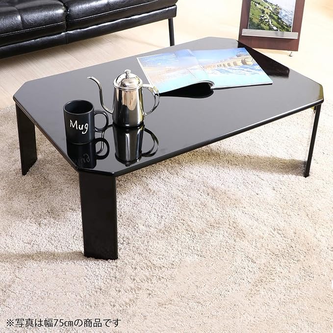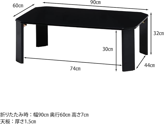 不二貿易 ローテーブル 折りたたみテーブル 幅90 奥行60 高さ32cm ブラック リビングテーブル UV塗装 お手入れ簡単 角が丸い ルーチェ 38419