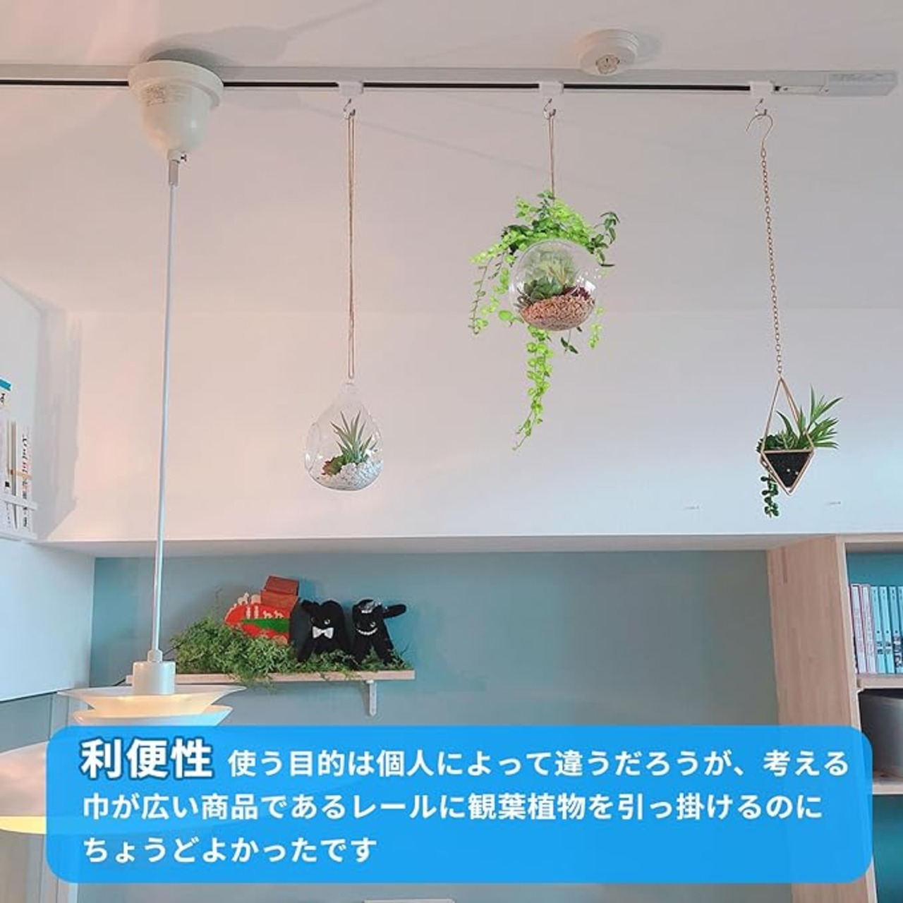 2、【特長】ダクトレールにはめて半回転させるだけなのでとても簡単に設置できます。ドライフラワーのスワッグなど軽いものを引っ掛けるのに使用しています。フックがあると色々アレンジできますし、フックにグリーンを飾ると部屋の雰囲気も変わってなかなか良いですね。