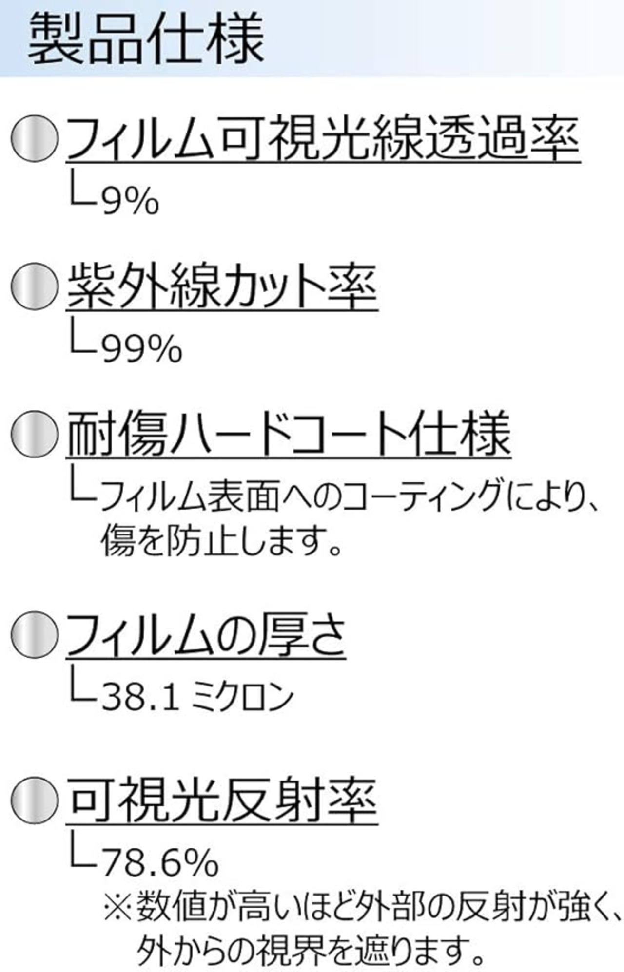 フィルムカラー=可視光線透過率 : 9%