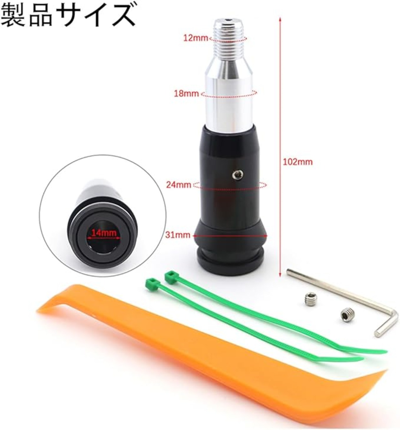 シフトノブ 汎用品 M12 12mm タイプ プッシュ式 ギアシフトコンバーター シフトレバー カーシフトヘッドアクセサリー 延長 コンバーター エクステンションロッド アダプター アルミ合金 AT車用 (ブラック, M12)