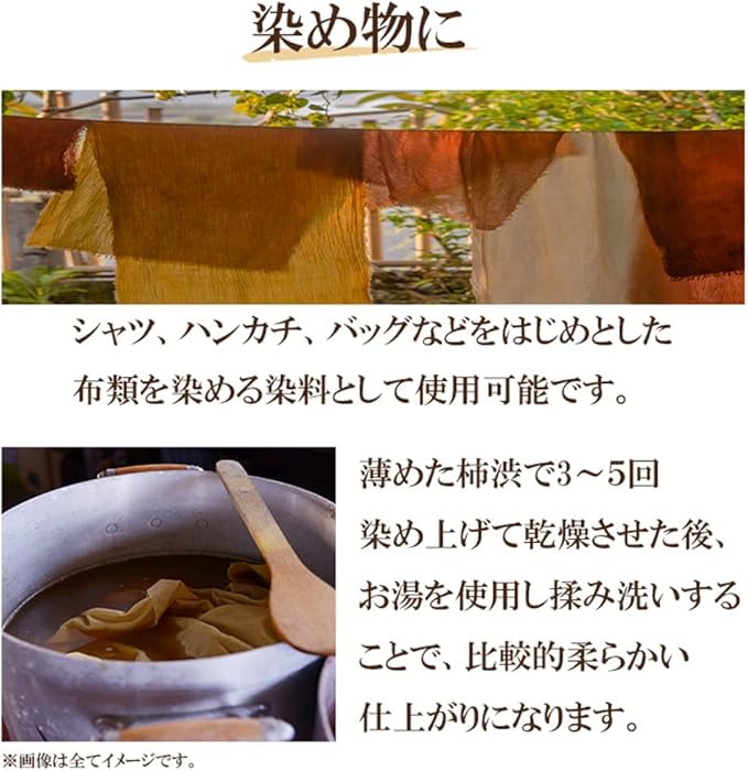 【柿渋とは?】柿渋は天然素材の塗料です。こちらは、柿渋特有の臭いの元となる天然物由来成分(柿タンニン)を物理的な濾過だけで分離して臭いを解消した無臭タイプとなっております。
