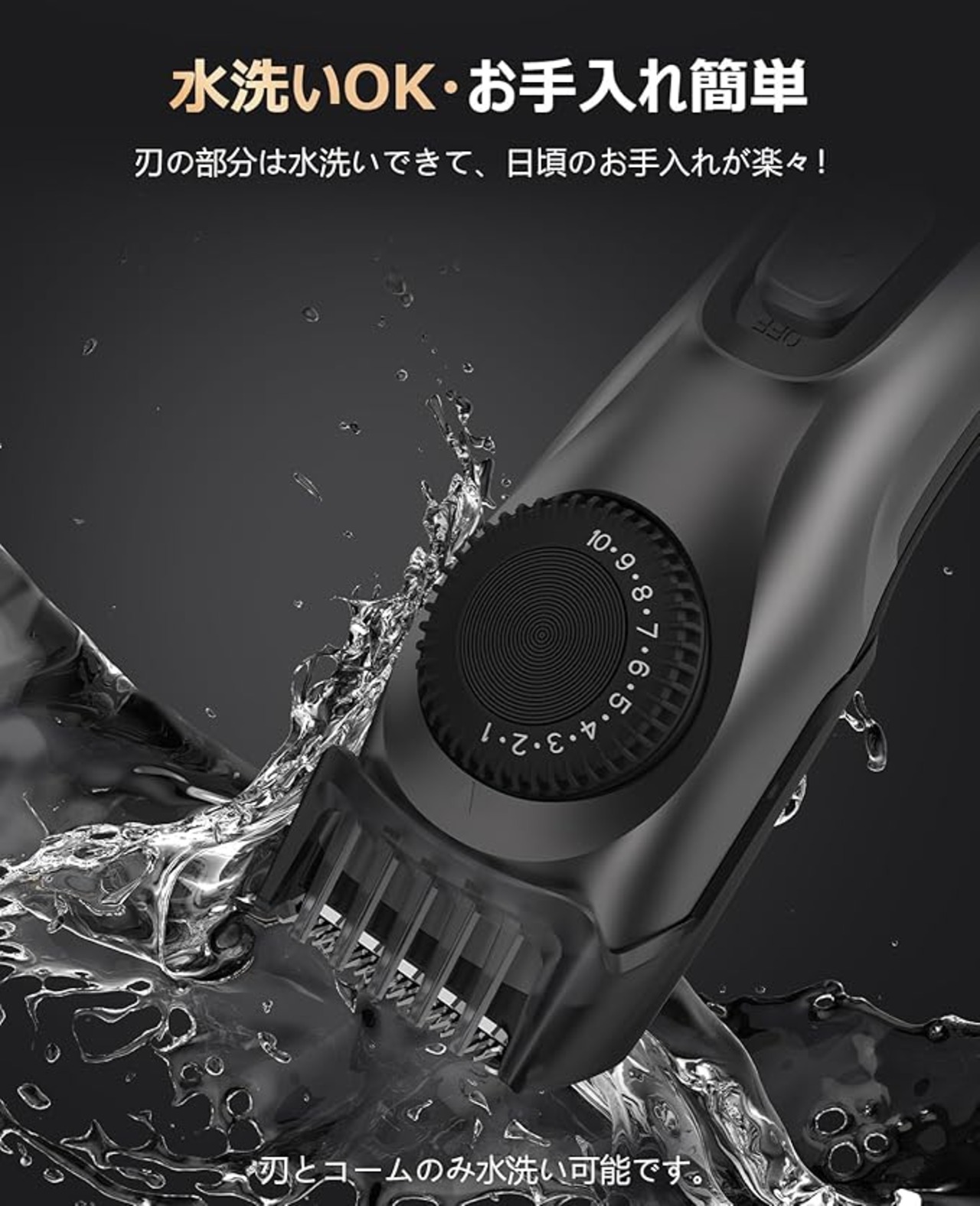 【水洗いOK&安全清潔】髭トリマーの刃は水洗いでき、毛クズを洗い流せて、お手入れラクラク。刃に付着した皮脂汚れ洗浄し、切れ味が衰えなく清潔で保ちます。刃先やコームが丸みを帯びており、ヒゲを起こしてからカットすることで肌へのダメージを抑え、敏感肌の方でも安心して使えます。