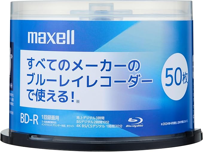 【限定商品】 マクセル(maxell) ブルーレイディスク 録画用BD-R 50枚入 BRV25EG.50SPZ 1回録画タイプ 25GB(片面1層)地上デジタル180分/BSデジタル130分/4K BS・CS90分スピンドルケースインクジェットプリンター対応
