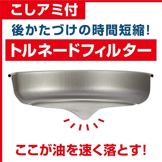 新開発のトルネードフィルターにより油が早く落ちるのであと片付けが快適