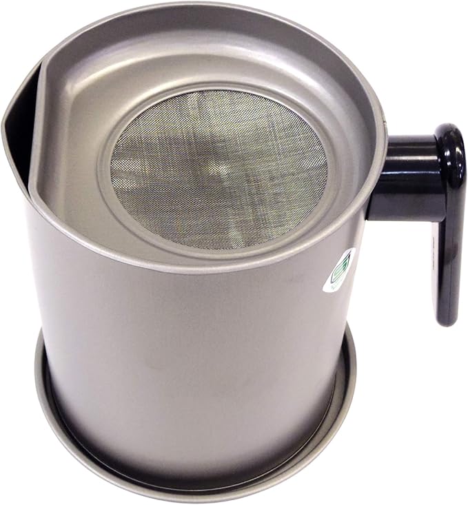 竹原製缶 オイル ポット フッ素加工 日本製 グレー 1.5L 受け皿付 油がはやく入る(主婦の発明) FO-T シルバー