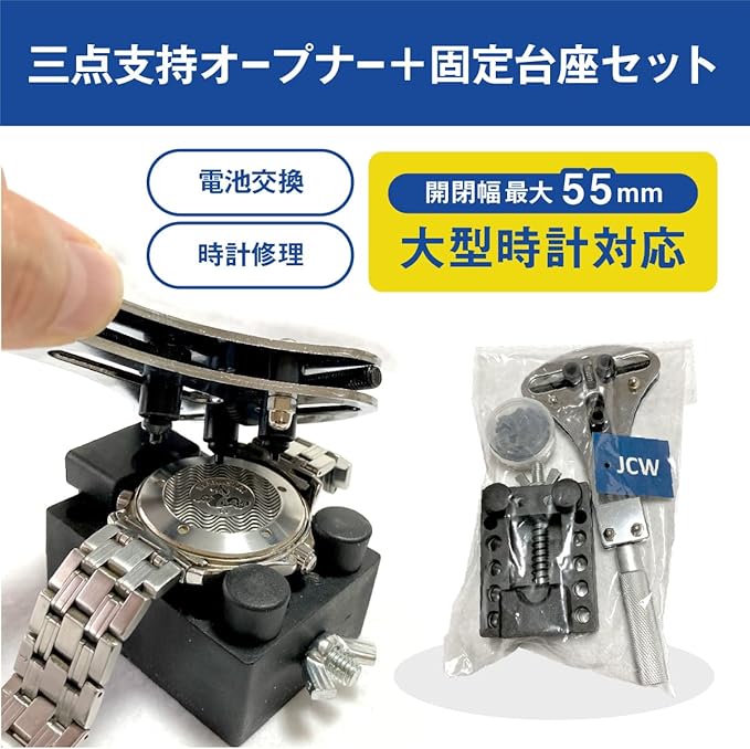 JCW 時計工具 三点支持オープナー+固定台座セット 大型腕時計対応 裏蓋外し スクリューバックオープナー 電池交換などに