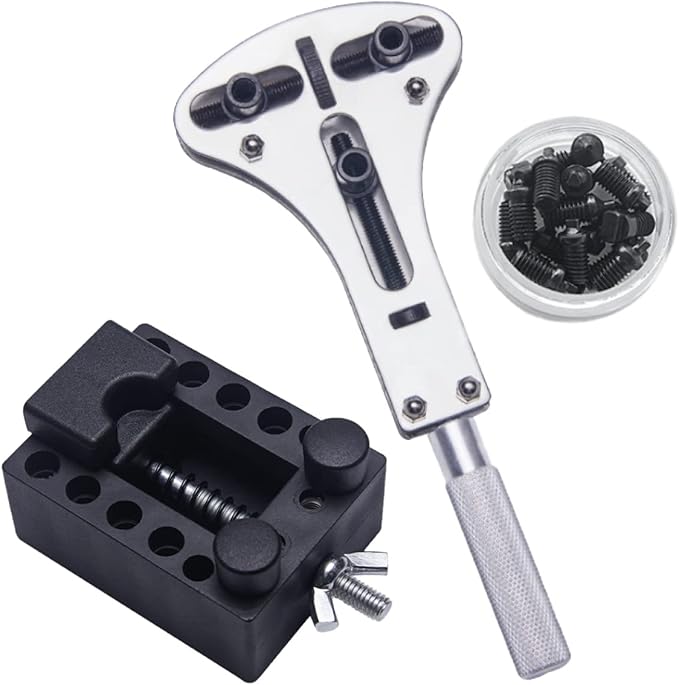 腕時計の電池交換・修理に便利な裏フタ開け器+固定用台座セット