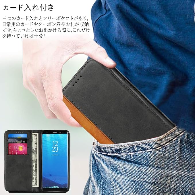 Galaxy Feel2 SC-02L ケース ギャラクシー Feel 2 SC02L カバー ギャラクシーFeel 2 対応 sc-02l スマホケース 手帳型 カバー 財布 適用 case 内蔵マグネット 携帯カバー スタンド機能 シンプル カバー 落ち着いた色 TPUケース付き 耐衝撃 2色組合せ レトロ ブラック
