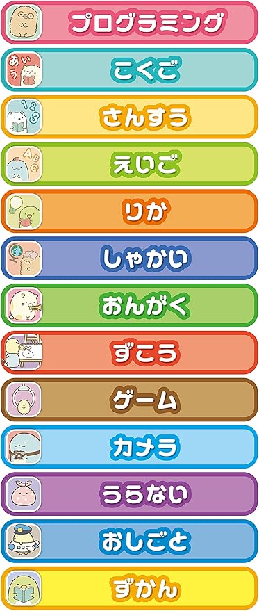 90アプリ、192メニューの充実した内容で、すみっコたちと遊びながら楽しくお勉強もできます。