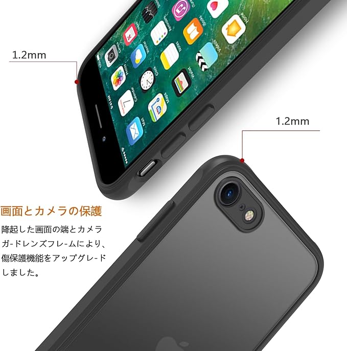 iphone se ケース iphone se3/se2 ケース スマホカバー 耐衝撃 指紋防止 滑り止め マット半透明 黄ばみなし レンズ保護 米軍MIL規格アイフォンse2 se3 7 8 用カバー 4.7インチ PinLiSheng (ブラック, iPhone SE2 / SE3 /8 /7)