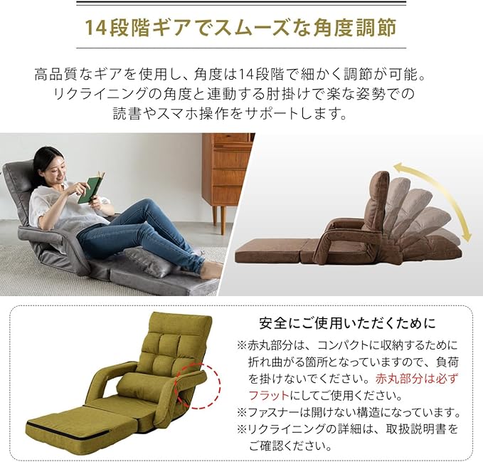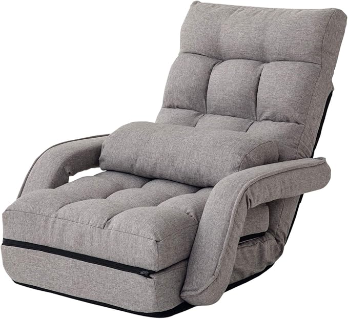 エムール 肘掛け付き 座椅子 Mollet ソファー シルバーグレー 折りたたみ 3WAY 14段階リクライニング 軽量