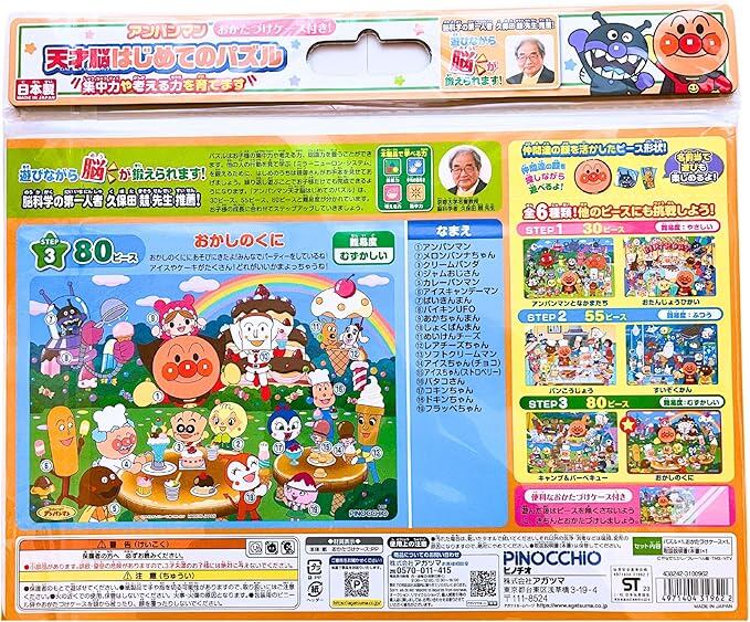 【3点セットB】アガツマ(AGATSUMA) アンパンマン 天才脳はじめてのパズル30ピース(アンパンマンとなかまたち) ・55ピース(パンこうじょう)・80ピース(おかしのくに)