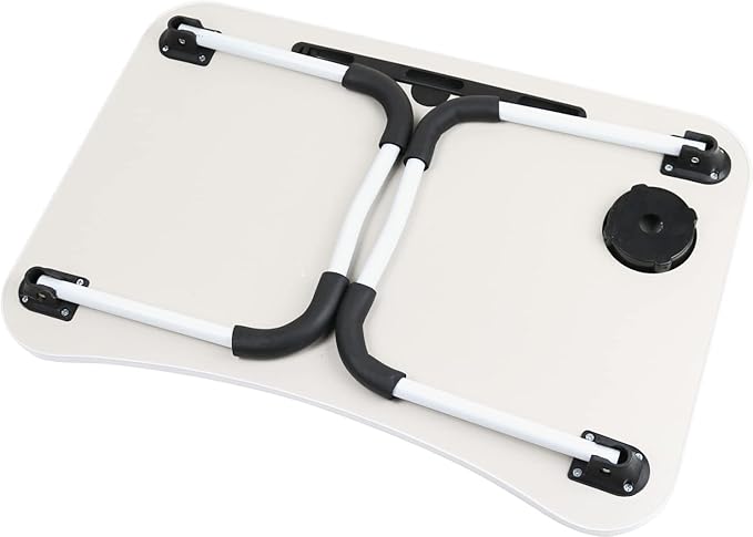 トレードワン(TRADE ONE) 折りたたみガジェットテーブル ノーマルサイズ ソファでお仕事 耐荷重10kg コンパクト 幅60 奥行40 高さ26.5cm タブレットスタンド付き ドリンクホルダー付き 持ち運び便利 ホワイト 60123