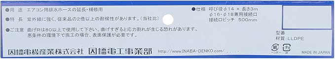 因幡電工 補修・延長用ドレンホース(2M) HDHQ-14-2M