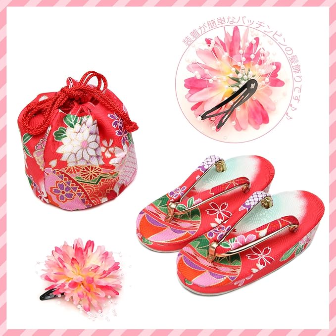 [セット内容]:被布/着物/伊達衿/長襦袢/髪飾り/巾着/草履/腰紐/足袋/専用化粧箱