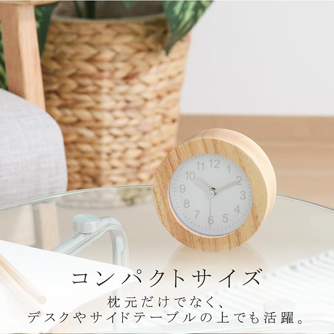 カチコチと音が鳴らないスイープムーブメントで、寝室などの静かな空間にも使用できます。