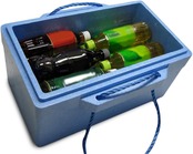 持ち運びに便利な手持用ヒモが付いた発泡クーラー。飲料の保冷保温に。