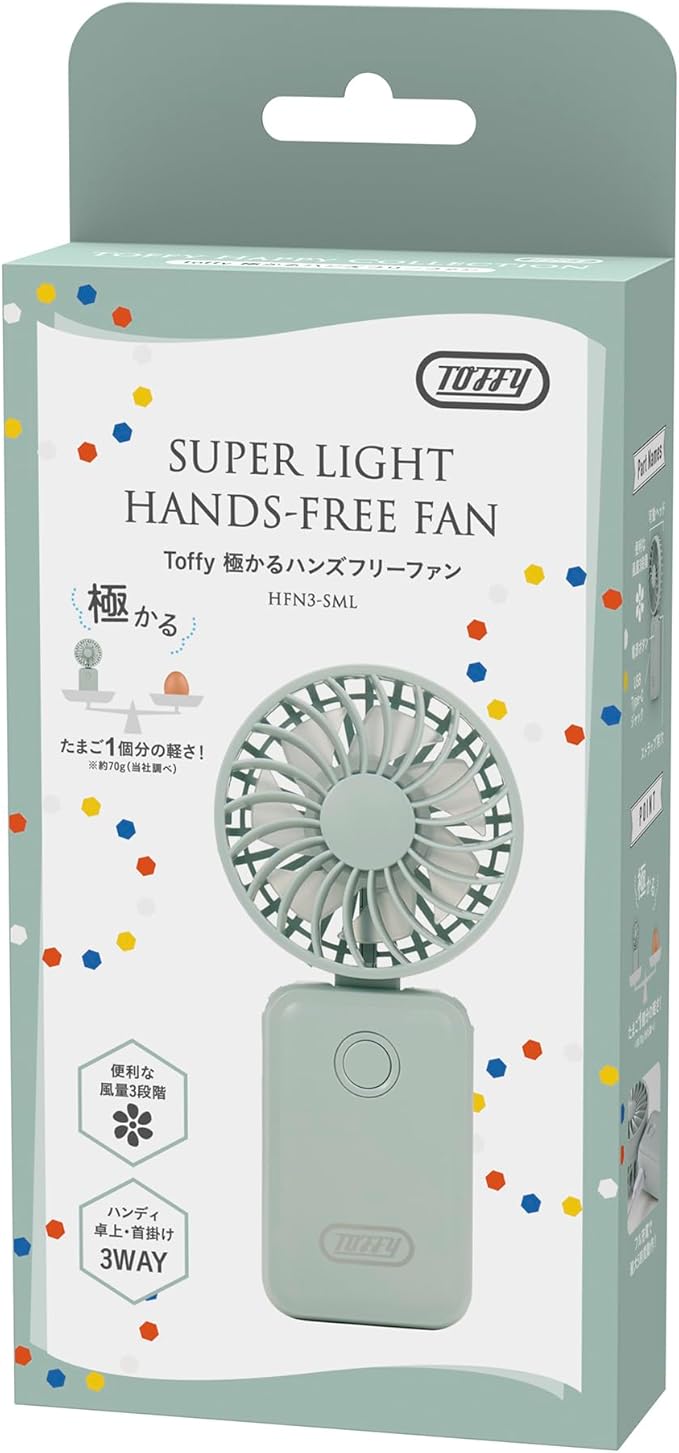 【Toffy/トフィー】 極かるハンズフリーファン HFN3 超軽量 たまご1個分 3WAY ハンディ首掛け 卓上 シンプル操作 HFN3 (スモーキーリーフ)