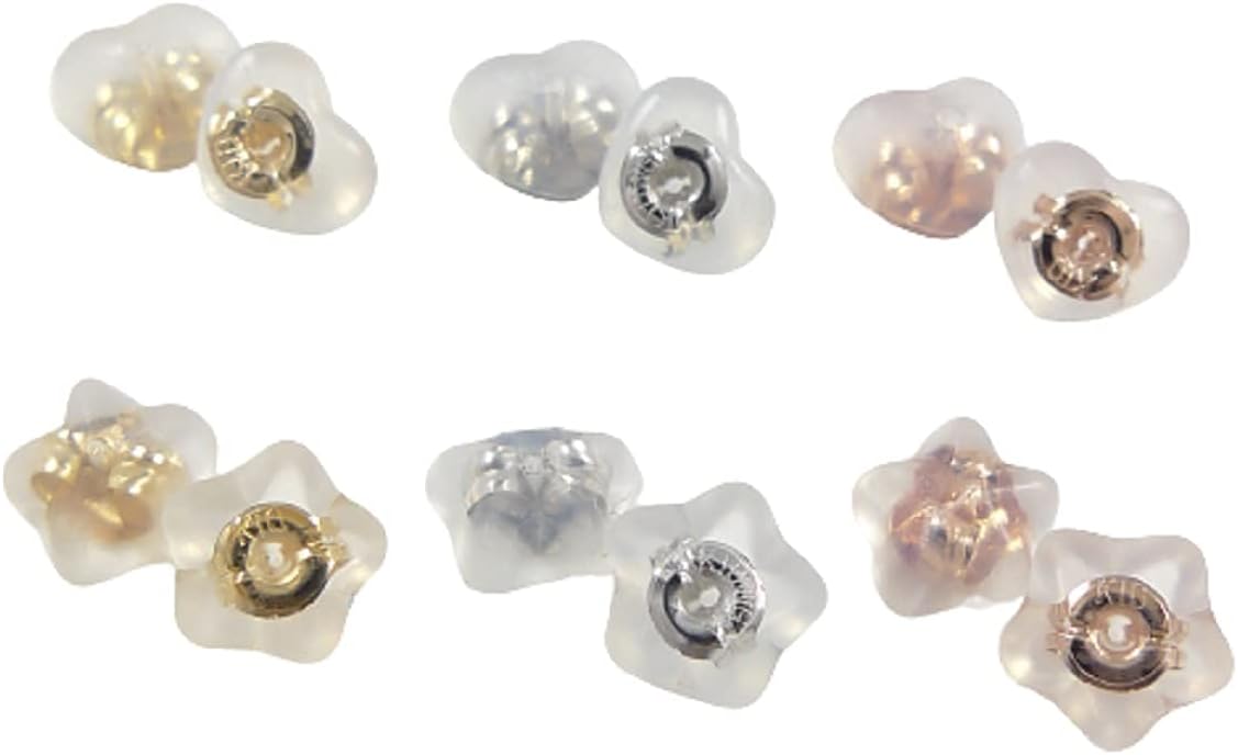 10金 ピアスキャッチ ダブルロック シリコン ハート型 イエローゴールド 両耳 ペア 2個入り