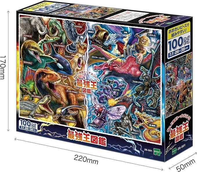 エポック社 100ラージピース ジグソーパズル 最強王図鑑 (26 38cm) 26-501 のり付き ヘラ付き 点数券付き EPOCH