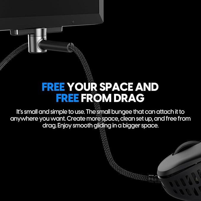 ケーブルの絡まりや可動範囲の狭さから解放され自由な動きを体験できます。 シームレスな左右の動きを楽しみながら、デスクをすっきりと整理整頓できます。 ESマウスバンジーを使って、ゲームと生産性を向上させましょう。
