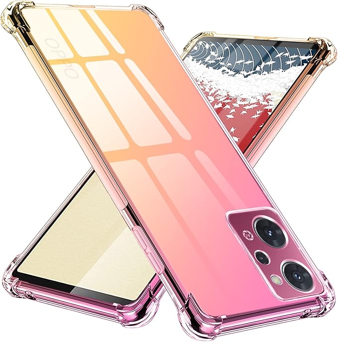 TMUJWS OPPO Reno7 A ケース シリコン クリア グラデーション ソフトケース 薄型 軽量 OPG04 ケース 耐衝撃 全面保護 tpu 四隅空気衝突防止 レンズ保護 擦り傷防止 オッポ レノ 7a ケース 人気 携帯カバー ピンク+金 MZ75-45