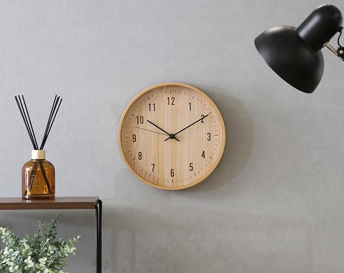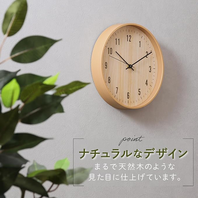 不二貿易 掛時計 ライフ 直径25cm 幅25 奥行4 高さ25cm ナチュラル 木目調 シンプル 静音 39869