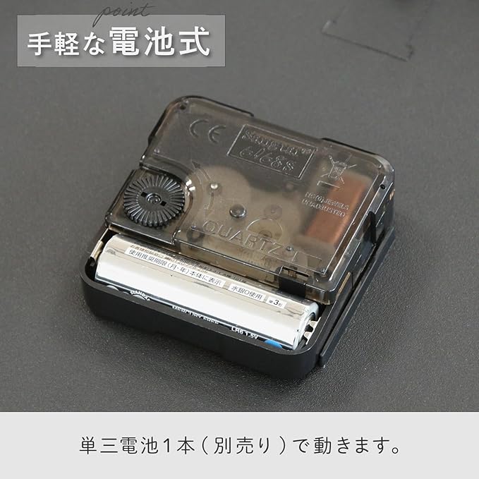 文字盤を滑るように連続的に秒針が動くので「コチコチ音」がしません。 寝室など静かな場所でもお使いいただけます。