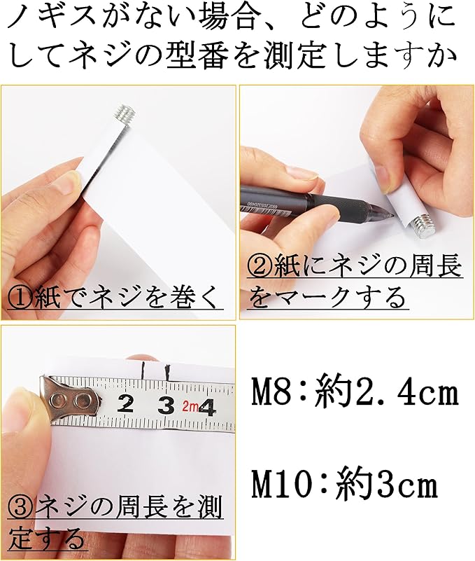 支柱はM10のネジに適しています。ご購入頂く前に、必ずネジの直径とポールの長さを確認してください。
