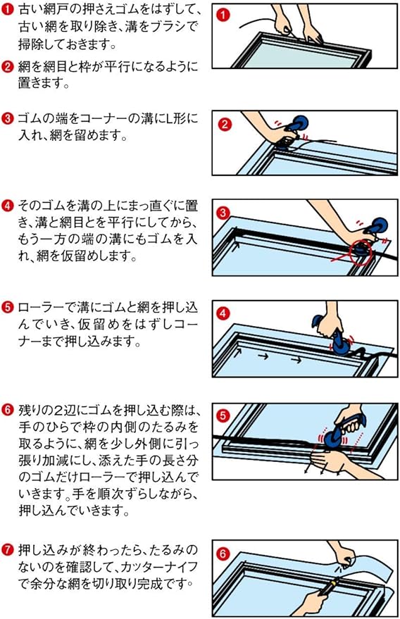 ・網戸張替えの際、強く張り過ぎると網戸枠が曲がったりネットが外れる可能性があります。