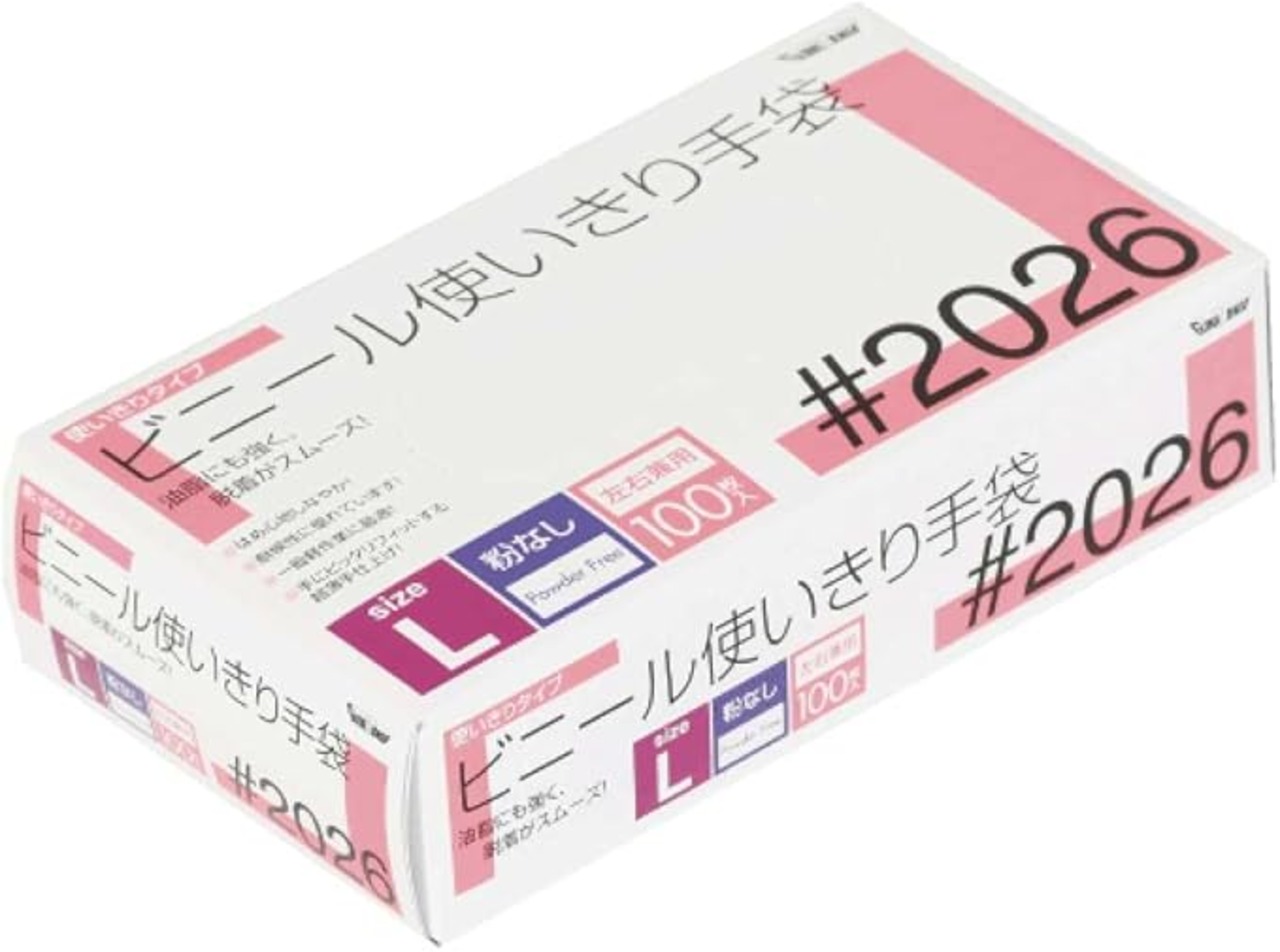 川西工業 #2026 ビニール使いきり手袋 粉無 100枚入 L