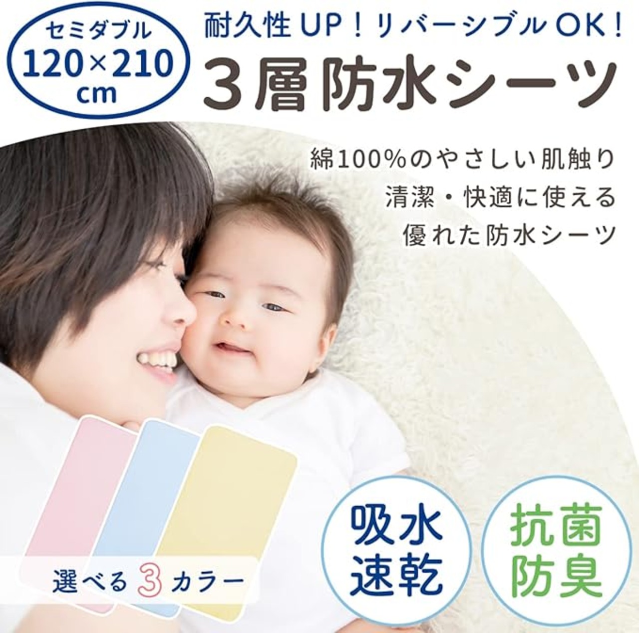 ご好評をいただいておりますun doudouの防水シーツをリバーシブルで使える3層構造にしました。
