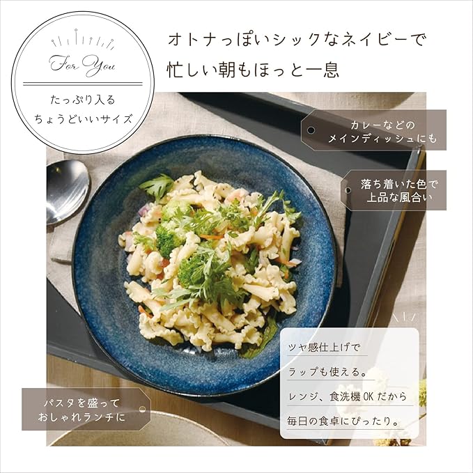 アイトー(Aito) aito製作所 「 ナチュラルカラー 」 カレー皿 パスタ皿 約21cm ネイビー 美濃焼 食洗機 電子レンジ対応 日本製 517016