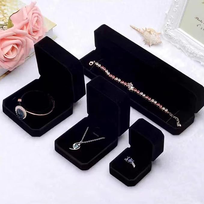ネックレス ペンダントケース,ブラックジュエリーギフトボックス,ネックレスホルダー, 黒いベルベットボックス(ネックレス/ペンダントボックス 7*7*4cm)