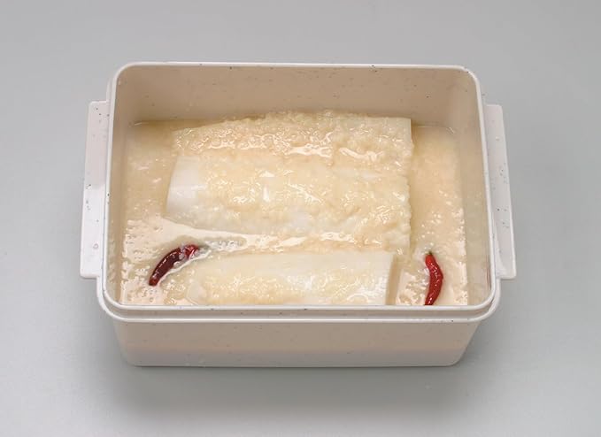 自家製のぬか漬けが簡単にお家で作れる。冷蔵庫に入れやすいコンパクトサイズのぬけ漬け容器。きゅうりが約6本入り、ぬか床のお手入れが簡単。水取り付きなのでぬか床にたまる水を自然に取り込み、簡単に処理できます。漬物レシピのしおり付き。