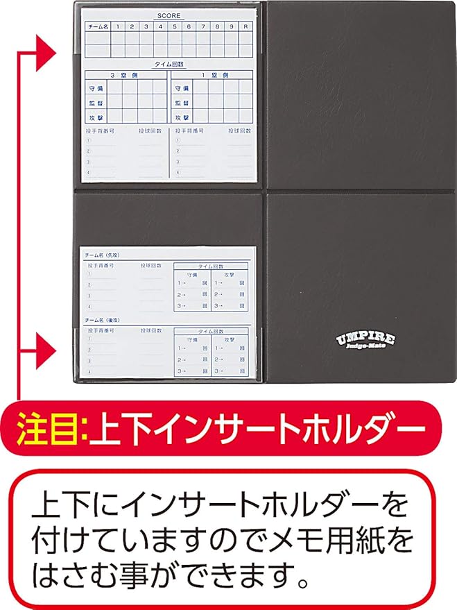 審判員サポートグッズ。打順表やメンバー表をファイルできる審判に便利なフォルダー