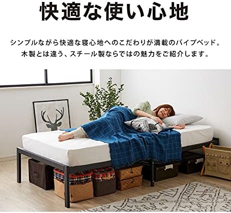 パイプベッド ベッドフレーム ベッドフレーム単品 ベッド ブラック スチール パイプ 1人暮らし ワンルーム (ブラック, シングル)