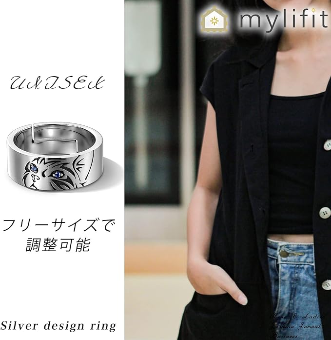 [mylifit] 指輪 メンズ リング 【フリーサイズ 可愛い猫 デザイン】 猫 肉球 シルバー925 動物 ネコ アクセサリー シンプル オシャレ 光沢 調整可能 男女兼用 ギフト 卒業式 誕生日 記念日