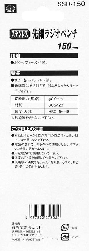 SK11(エスケー11) ステンレス製 先細ラジオペンチ 先端ギザ付き SSR-150