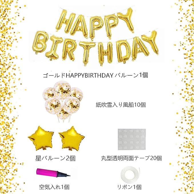 LOVA誕生日 飾り セット 風船 ゴールド HAPPY BIRTHDAY 装飾 バースデー ガーランド バースデー パーティー 誕生日 飾り付け