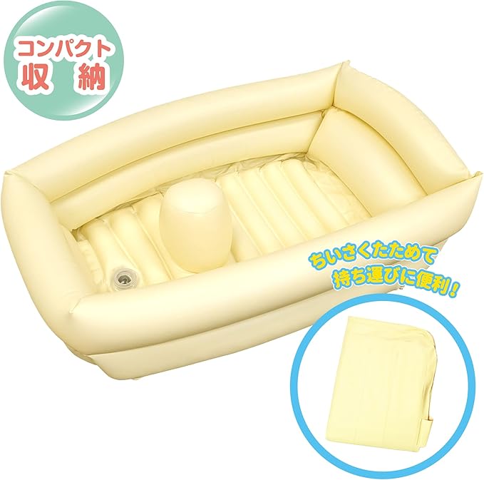 赤ちゃんの沐浴用バスタブです。空気で膨らませるため、ふわふわで赤ちゃんも安心です。