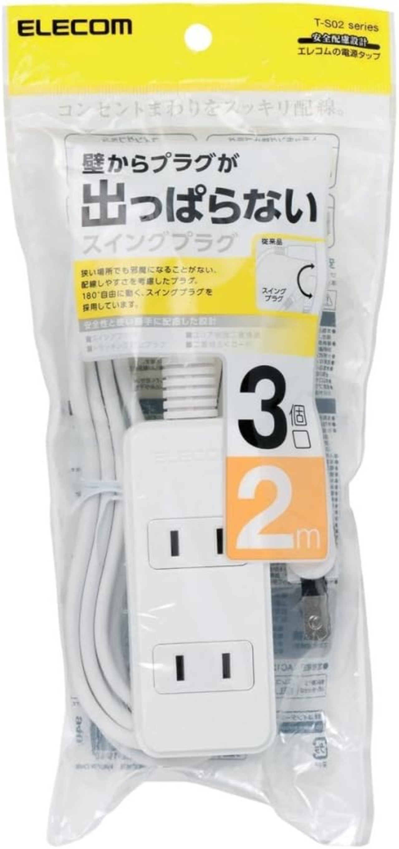 エレコム 電源タップ 配線しやすい180 スイングプラグ 3個口 2m ホワイト T-S02-2320WH