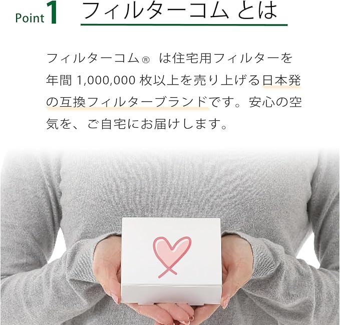 【フィルターコムとは】住宅用フィルターを年間1,000,000枚以上を販売している日本製の互換フィルター限定商品です。安心の空気を、ご自宅にお届けします。