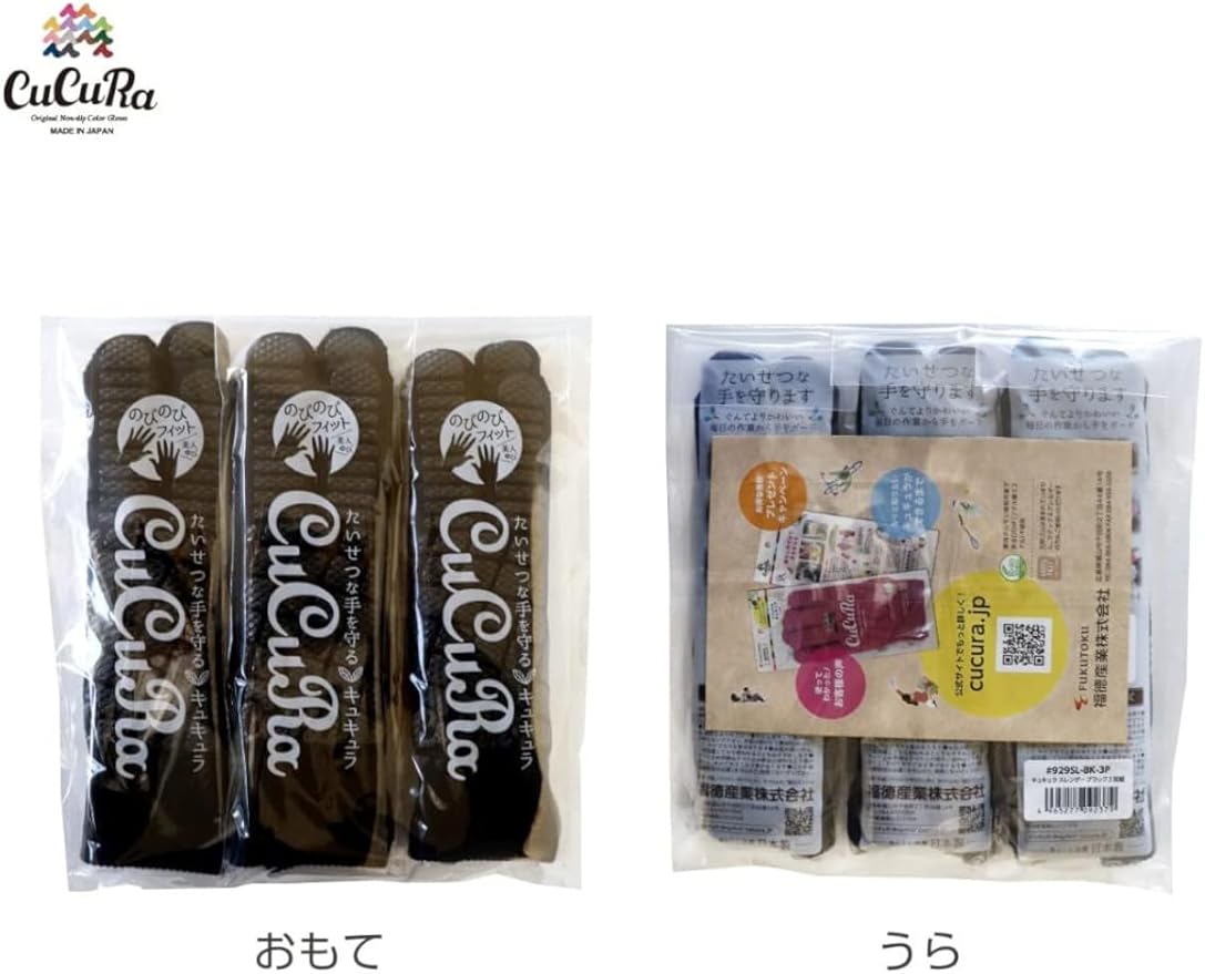 [福徳産業] CuCuRa(キュキュラ) すべり止め 軍手 作業用手袋 ブラック スレンダー 3双入 日本製 女性の手でもぴったりフィット 動かしやすい伸縮性 ラテックスフリー #929SL-BK-3P