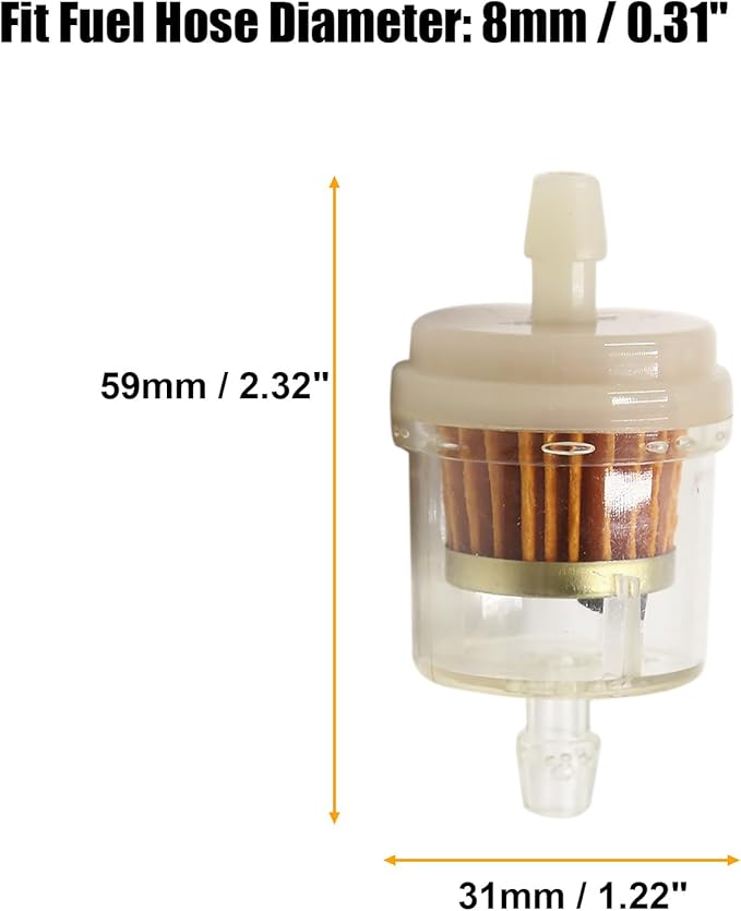 キャブレター付きオートバイ、ATV、UTV、屋外動力装置、発電機または8mm燃料ホースを使用する燃料システム用の汎用燃料フィルター。