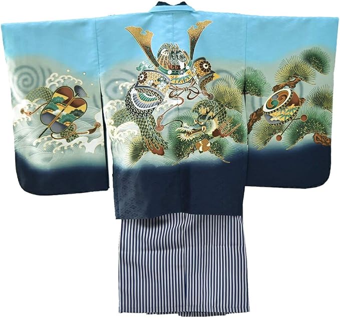 七五三 着物 男の子 5歳 [なごみや] アンサンブル10点セット 兜に龍 縞袴 箱なし 羽織+袴+長着+小物 キッズ
