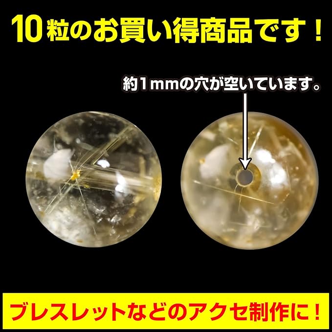 【材 質】ゴールドルチルクォーツ【1粒のサイズ】約10.5~11.5mm 【数 量】10粒入り