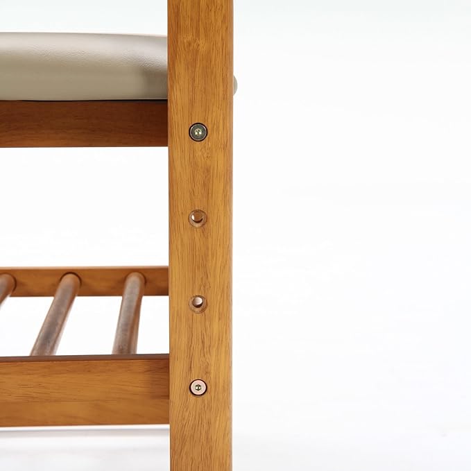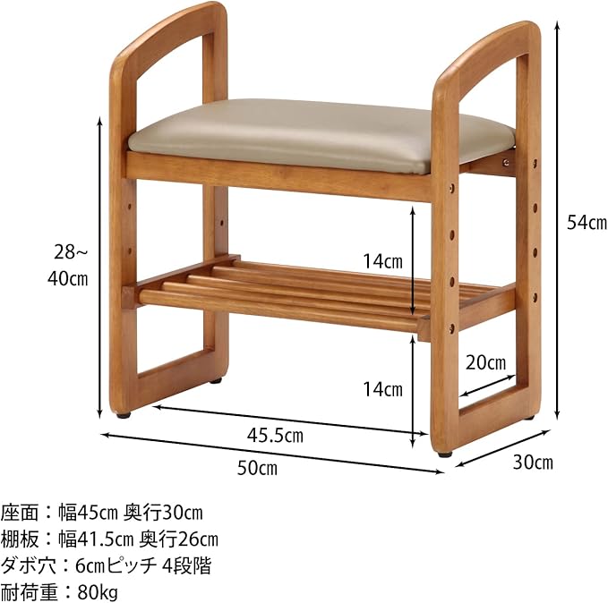 不二貿易 玄関椅子 玄関ベンチ 幅50 奥行30 高さ54cm ナチュラル 木製 高さ調節可能 棚付き サポートチェア 95778