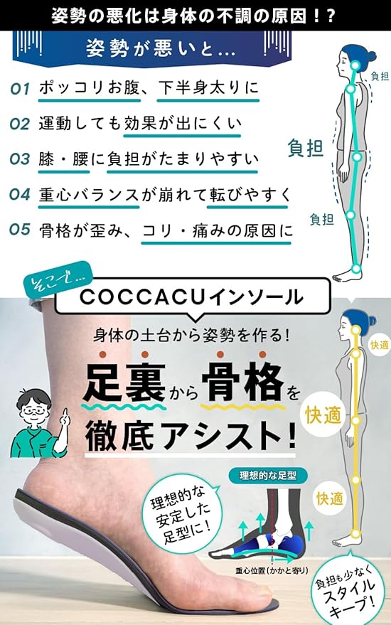 ✅【足のトラブル・お悩みをオールサポート】足の骨格をしっかり支えて、トラブルの原因となる骨格の歪みを補正。しっかり足ケアをしたいなら「骨格インソール」です。