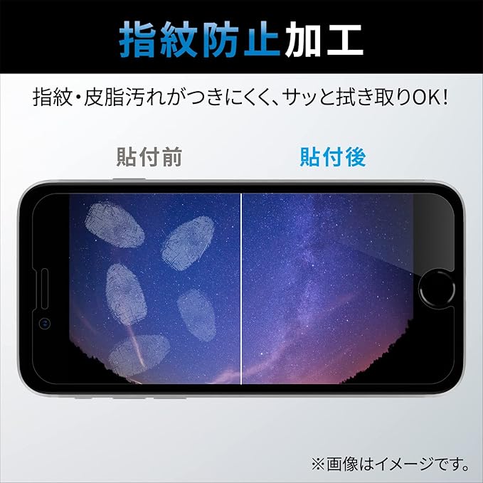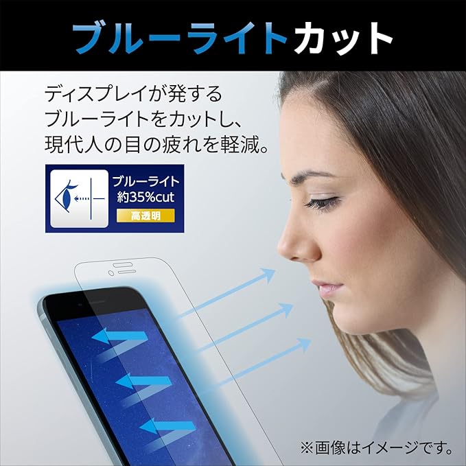 iPhone SE 第2世代/第3世代、iPhone 8、iPhone 7、iPhone 6s、iPhone 6の液晶画面をキズや汚れから守る、指紋防止、ブルーライトカット、反射防止タイプの液晶保護フィルムです。